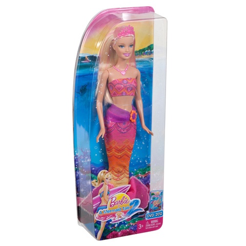 Барби героиня любимого мультфильма о Русалочке. Костюм Русалочки тканевый, снимается, под ним обычные ноги. Барби украшена ожерельем и диадемой, есть также ожерелье и для девочки. Высота куклы: 28 см. Производитель: Mattel (США).