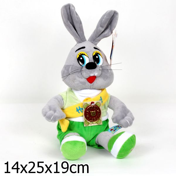 Мягкая озвученная игрушка Заяц выполнен из короткого, но очень плотного серого меха, похожего на плюш. Особенность игрушки в том, что она «умеет» разговаривать и петь песенки из хорошо знакомых детям мультиков. У зайчика милая, веселая, озорная мордашка и яркий, модный наряд.